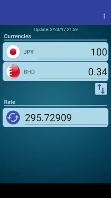 Ervaar zelf het gemak en de nauwkeurigheid die deze applicatie te bieden heeft. Het combineert real-time data met persoonlijke controle, verpakt in een intuïtief ontwerp. Vereenvoudig uw financiële berekeningen en zorg ervoor dat u altijd de juiste waarde voor uw valuta krijgt, met name voor uw Japanse Yen en Bahreinse Dinar omrekeningen.