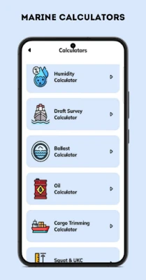 Ontdek een ongeëvenaarde suite van essentiële tools, speciaal ontworpen om elke maritieme professional te ondersteunen. Deze applicatie biedt een uitgebreide verzameling geavanceerde rekenmachines die de dagelijkse operaties aan boord stroomlijnen en optimaliseren. Van de nauwkeurige Draft Survey, Ballast en Oil Calculators – met zowel handmatige als automatische opties – tot de Main Engine Power, Slip, ETA en Stowage Plan Calculators, elke functie is ontwikkeld voor precisie en efficiëntie. Bereken moeiteloos Cargo Trimming, List, Interpolation, Squat & UKC, en zelfs de invloed van Changing Draft en GM bij dichtheidsveranderingen. Bovendien transformeert de veelzijdige Unit Converter en Humidity Calculator complexe omrekeningen tot een simpele handeling.