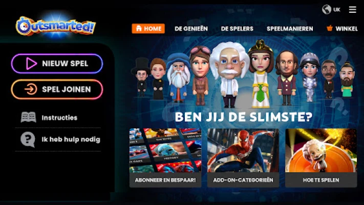 Outsmarted staat garant voor een ongekende variatie met meer dan 10.000 vragen, verrijkt met boeiende afbeeldingen, pakkende muziekfragmenten en intrigerende video's die elke ronde tot leven brengen. Maar wat Outsmarted echt onderscheidt, is het volstrekt eerlijke speelveld: de vragen passen zich automatisch aan het leeftijdsniveau van elke deelnemer aan, zodat iedereen een gelijke kans maakt om te schitteren. Bovendien blijft de kennisstroom nooit stilstaan; met regelmatige toevoegingen en zelfs een speciale categorie voor het laatste nieuws, is er altijd iets nieuws te ontdekken en te leren.