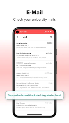 Maar Studo gaat verder dan alleen je studie. Ontdek dagelijks de lunchmenu's in de mensa, blader door relevante vacatures speciaal voor studenten en blijf op de hoogte van het laatste nieuws op de campus en in de stad. Deze veelzijdige app ondersteunt studenten aan honderden instellingen in heel Duitsland en Oostenrijk. Of je nu studeert aan de Universiteit van Keulen, LMU München, RWTH Aken, Universiteit van Wenen, of in steden zoals Graz en Innsbruck, Studo is er voor jou. Ontdek de naadloze integratie van jouw universitaire leven in één intuïtieve applicatie.