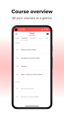 Met meer dan 30 functies bundelt Studo alles wat je nodig hebt binnen handbereik. Van een helder cursusoverzicht met bijbehorende documenten tot een gepersonaliseerd rooster dat je geen college meer laat missen. Blijf naadloos communiceren via de geïntegreerde chat met medestudenten en je mailclient voor berichten van docenten. Studo informeert je ook direct over nieuwe tentamenresultaten middels pushnotificaties en berekent je gemiddelde cijfer. Dit maakt Studo de meest complete metgezel voor jouw academische reis.